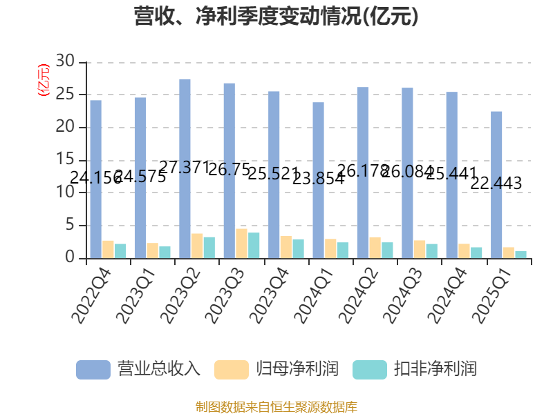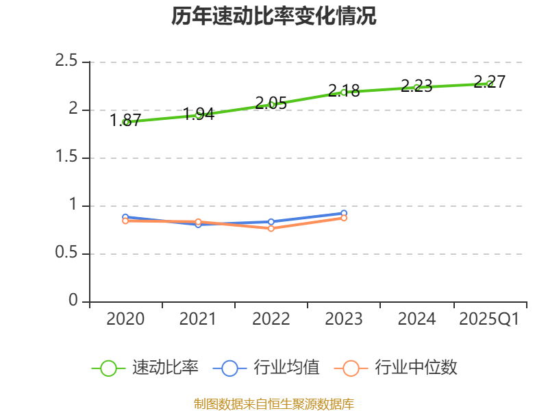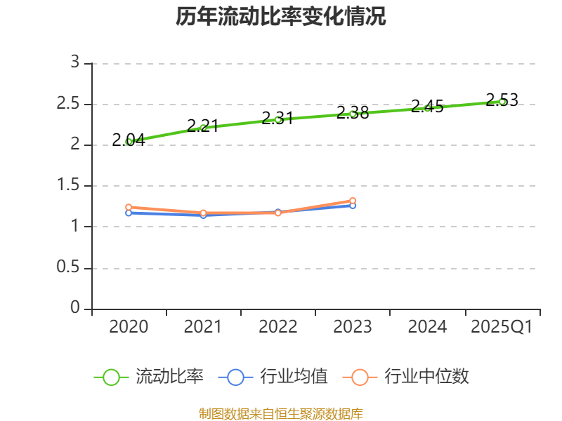 2025年第一季度,公司流动比率为2.53,速动比率为2.27。