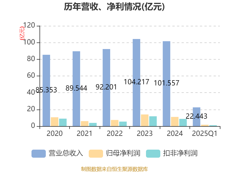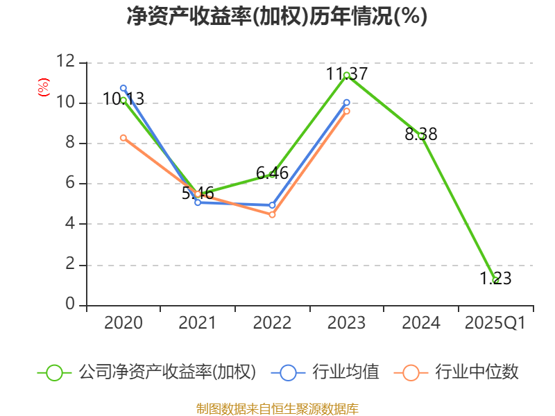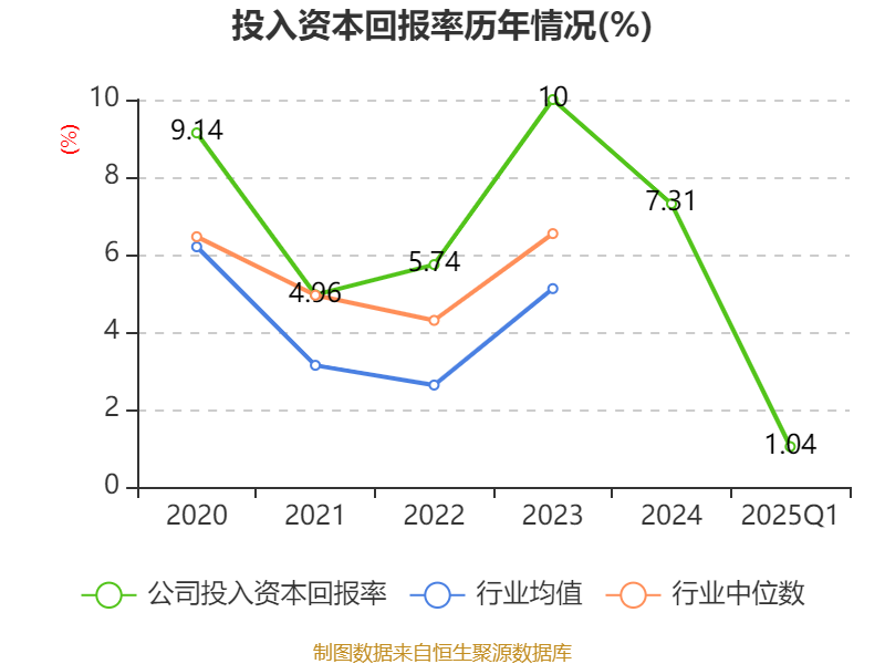 盈利能力方面, 2025年一季度公司加权平均净资产收益率为1.23%,同比下降1.03个百分点。公司2025年第一季度投入资本回报率为1.04%,较上年同期下降0.95个百分点。
