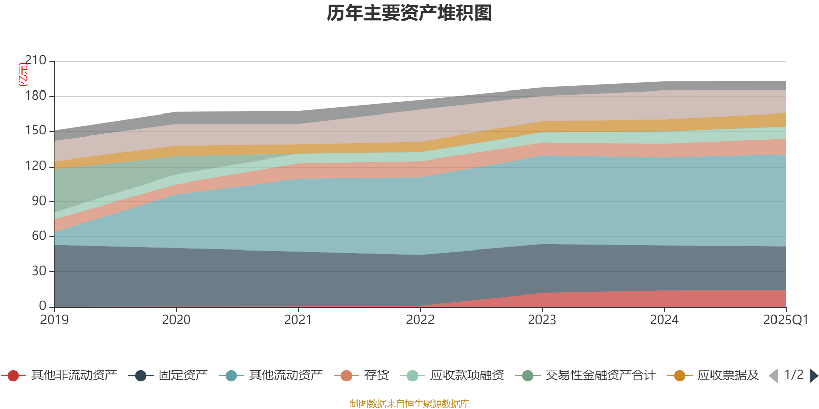 资产重大变化方面,截至2025年一季度末,公司货币资金较上年末减少19.75%,占公司总资产比重下降2.53个百分点;其他流动资产较上年末增加4.33%,占公司总资产比重上升1.65个百分点;存货较上年末增加15.56%,占公司总资产比重上升0.95个百分点;固定资产较上年末减少2.32%,占公司总资产比重下降0.49个百分点。