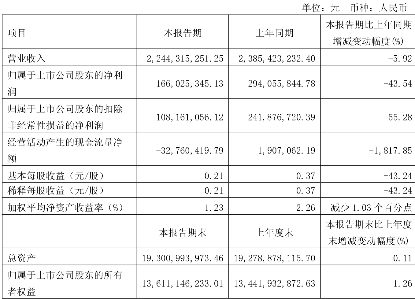 中证智能财讯三角轮胎(601163)4月26日披露2025年第一季度报告。公司实现营业总收入22.44亿元,同比下降5.92%;归母净利润1.66亿元,同比下降43.54%;扣非净利润1.08亿元,同比下降55.28%;经营活动产生的现金流量净额为-3276.04万元,上年同期为190.71万元;报告期内,三角轮胎基本每股收益为0.21元,加权平均净资产收益率为1.23%。