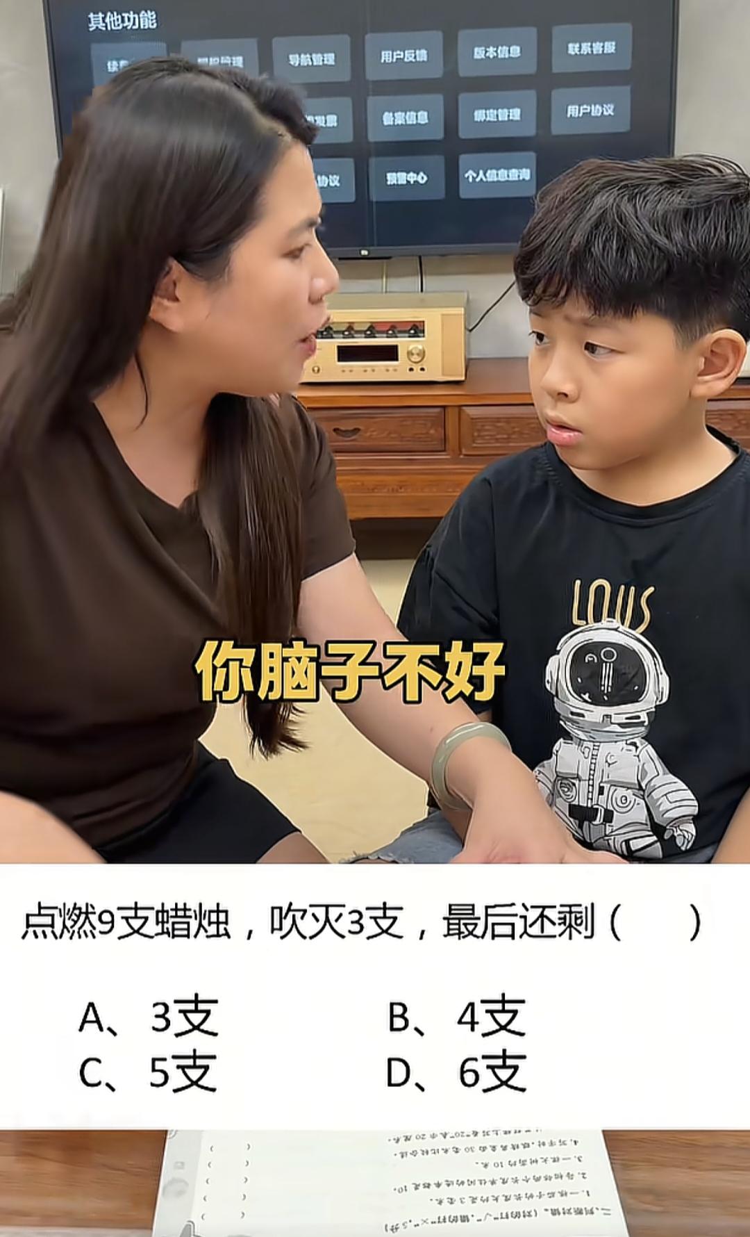 没想到儿子却反驳说:“人家问的是最后还剩几支蜡烛,吹灭的3支蜡烛难倒长腿跑了吗?”妈妈听后一脸懵,但也很快反应过来,这个答案没有想象中那么简单,不是单纯的数学题,而是数学跟生活结合的实践应用题。